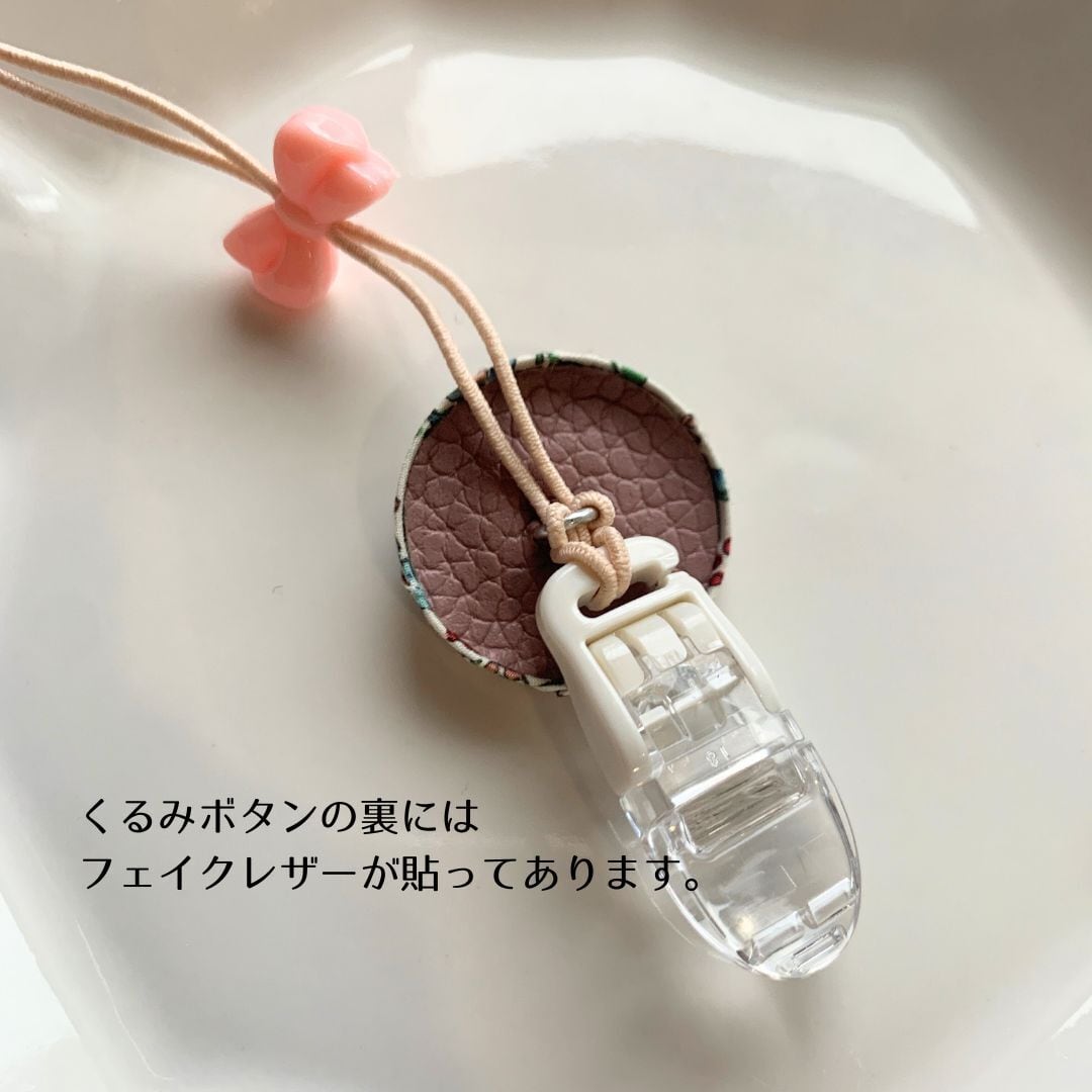 リバティ生地(フェリシテ)を使用した手作りくるみボタンがかわいい、